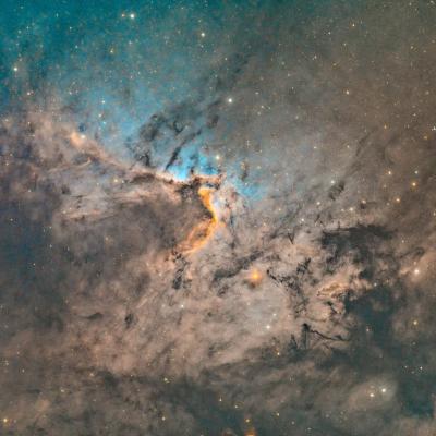 The Cave Nebula (Sh2-155) is a dim and very diffuse bright nebula within a larger complex containing emission, reflection, and dark nebulosity. It is located in the constellation Cepheus, approximately 2,400 light-years from Earth.